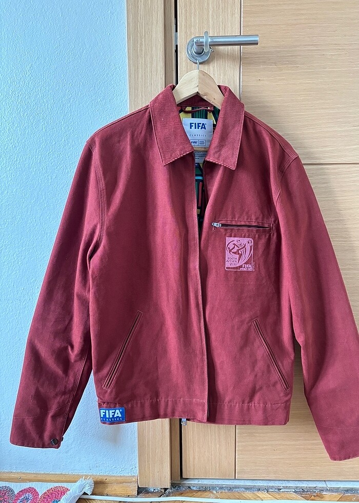 FIFA CLASSICS SOUTH AFRICA '10 JACKET RED – MEN'S Orijinal lisanslı FIFA Classics 2010 Dünya Kupası South Africa Ceket Yurtdışı ürünüdür. FIFA sitesinden ürünün ayrıntılarına ve fiyatlarına bakabilirsiniz. Türkiye’de satışı yoktur. Sadece birkaç kere giyilmiş ve tertemizdir.