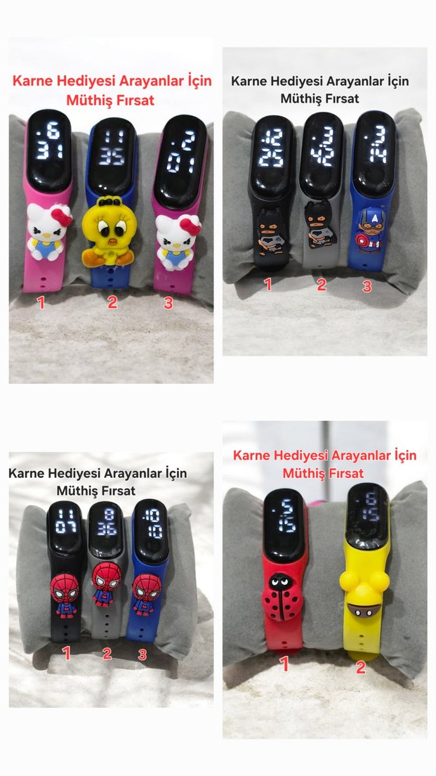 Bu harika ürüne çocuklarınız bayılacak! Her açıdan dikkat çekici olan bu saat, dokunmatik ekranı sayesinde ekrana dokunulduğunda açılır ve birkaç saniye sonra kendiliğinden kapanır. Harika bir hediyelik üründür; ister çocuğunuza alın ister sevdiklerinize hediye edin. Bu fiyata piyasada benzerini bulmak neredeyse imkânsız. Ürün Stoklarla Sınırlıdır. Lütfen İstediğiniz Renk Icin Numara Secerek Yeni Ilan Actırınız