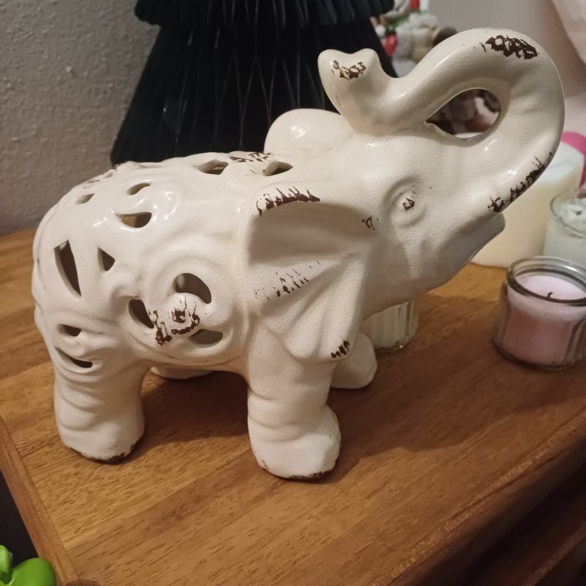 ayrintili gorselleri de yuklerim malzemesi ve markasi ne bilmiyorum Oymalı desenlere ve hafif aşınmış görünüme sahip bej seramik fil biblo. Her ortama dekoratif bir dokunuş katar.