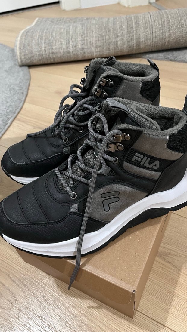 FILA gri baskılı erkek spor ayakkabısı, velcro ve bağcıklarla desteklenmiştir. Kauçuk tabanlı, spor ve sokak tarzına uygundur. Kar botudur
