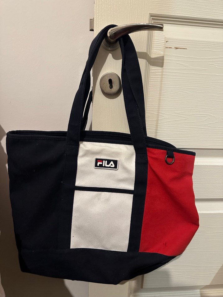 FILA markalı kadın çanta, fermuarlı ve baskılı tasarıma sahip. Koyu kırmızı ve siyah renklerde, yumuşak ve sıcak kumaştan üretilmiştir. Günlük kullanıma uygun şık bir model.