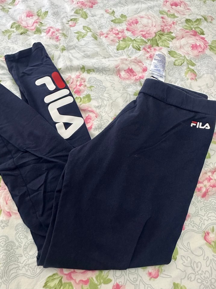 FILA marka, baskılı lacivert kadın tayt. Yumuşak ve sıcak kumaştan, elastik bel bantlı, spor ve günlük kullanım için uygun. ♀️temizdir