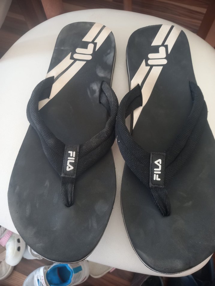 Siyah FILA erkek terlik, parmak arası ve kauçuk tabanlı, günlük sokak stili için uygundur. orjinaldir