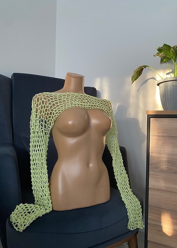 Açık yeşil renkli Parlak simli ipten örülmüştür S-M uyumludur