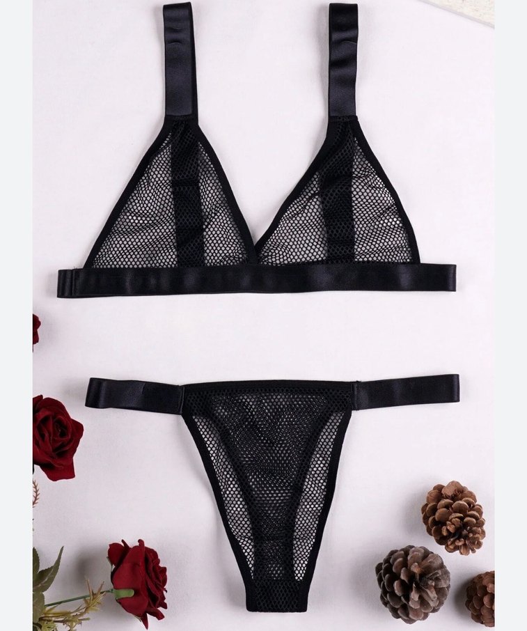 Siyah minimalist gotik file sütyen ve külot seti, geniş askılı ve normal boyda tasarıma sahiptir. Desensiz ve sade bir görünüme sahiptir. Yeni 36 beden ama esniyor lastik olduğu için