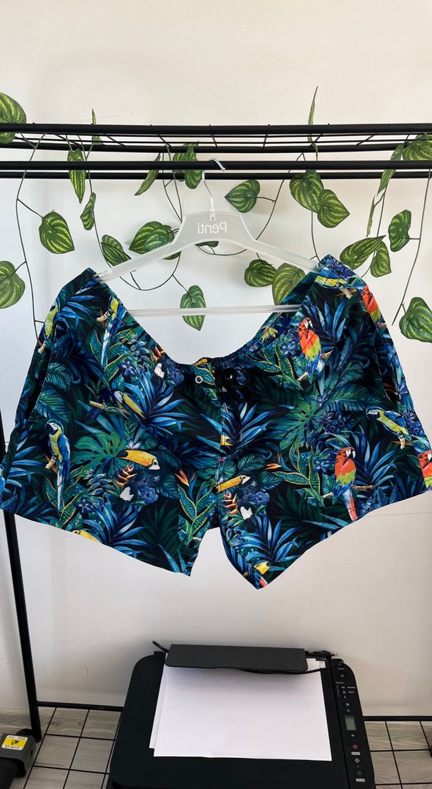 Desenli, bol kesim mini erkek şort mayo, düğmeli ve dış mekanlar için uygun streetwear tarzında. Filesini ve etiketini içinden sökmüştüm koton marka normalde