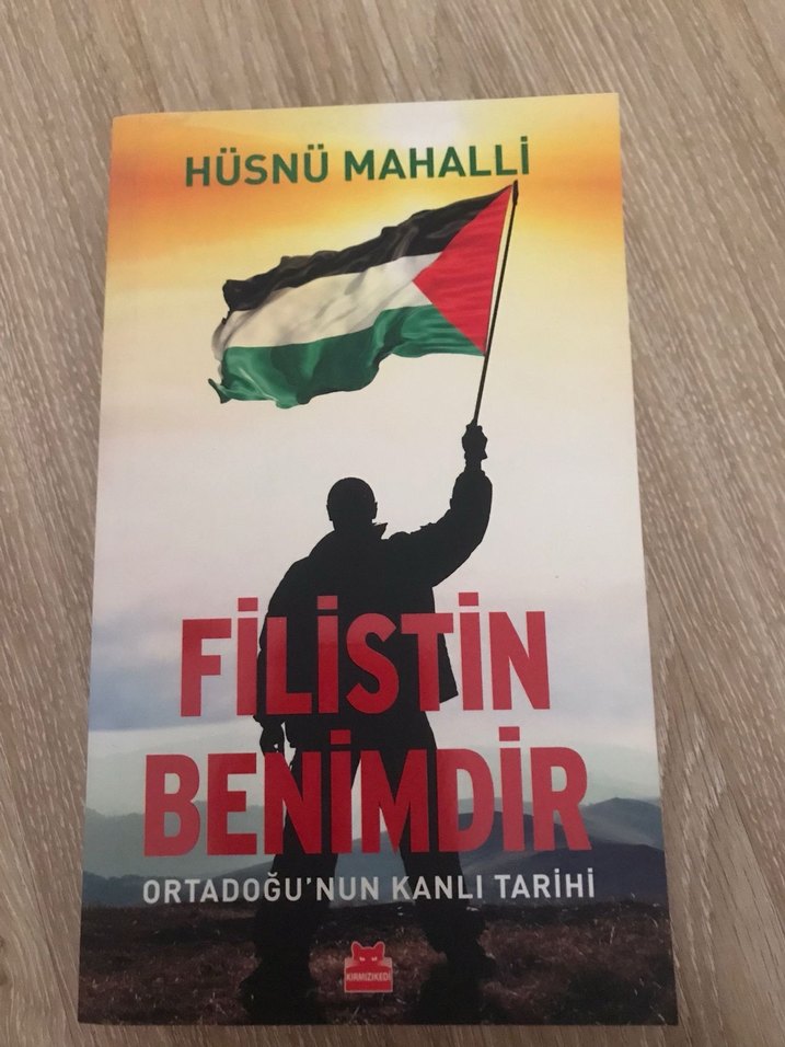 Hüsnü Mahalli'nin Ortadoğu'nun kanlı tarihini ve Filistin'i ele aldığı tarih kitabı. Kapakta Filistin bayrağı taşıyan bir siluet yer alıyor.