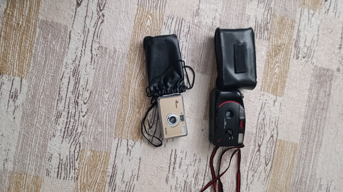 Camel renkli filmli fotoğraf makinesi, siyah koruyucu kılıf ile birlikte. Kompakt ve klasik tasarıma sahiptir ürünlerin ikiside çalışıyor büyük olanın pili vardır direk film takip çalıştırılabilirler bu tarz ürünlerin artık piyasada üretimi yoktur ayrı ayrı satılabilir yazabilirsiniz fiyatta anlaşırız