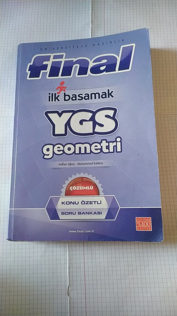 Final İlk Basamak YGS Geometri kitabı, çözümlü sorular, konu özetleri ve soru bankası içerir. Üniversiteye hazırlık için uygundur. 5 sayfa falan çözülu