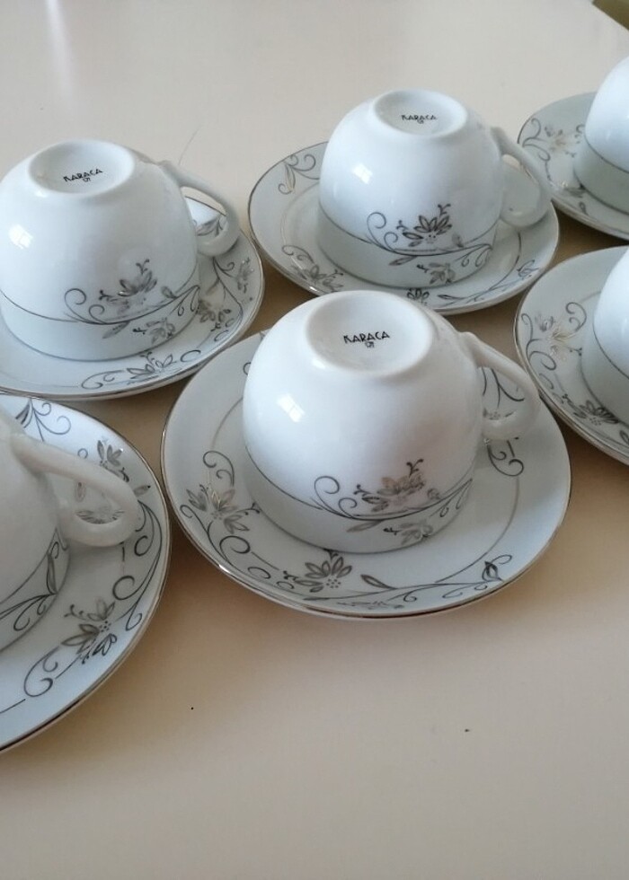 Çay fincanı takımı. Toplam 12 parçadır. 2 kere kullanıldı. Hasarsız hepsi. Kahve fincanı takımımı da başka bir ilanda satışa koydum. Son fotoğrafta 2 takım birden görünmekte.
