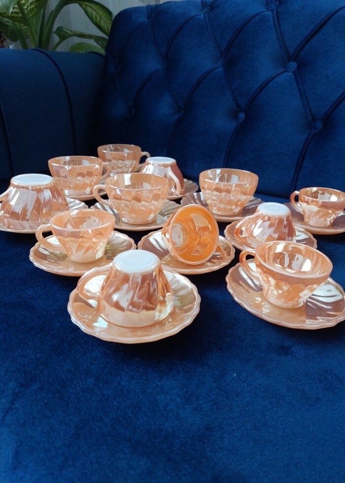 Anchor Hocking marka antika 6 kişilik fincan takımı ve 6 kişilik nescafe takımından oluşmaktadır