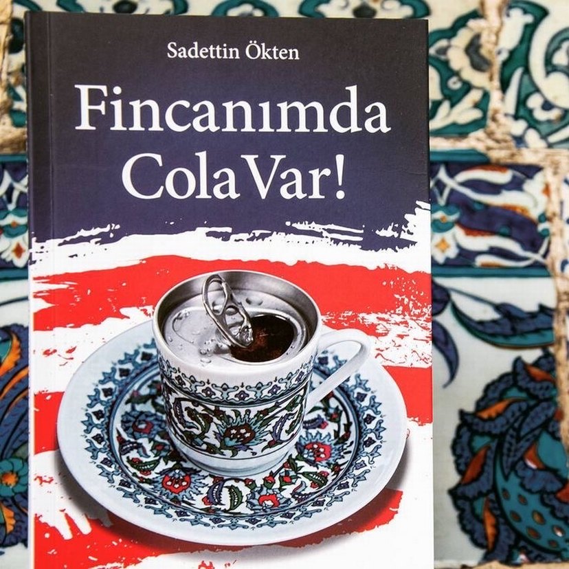 Sadettin Ökten'in "Fincanımda Cola Var!" adlı romanı, geleneksel bir fincan içinde kola bulunan dikkat çekici kapağıyla kültürel ve modern temaları birleştiriyor.
