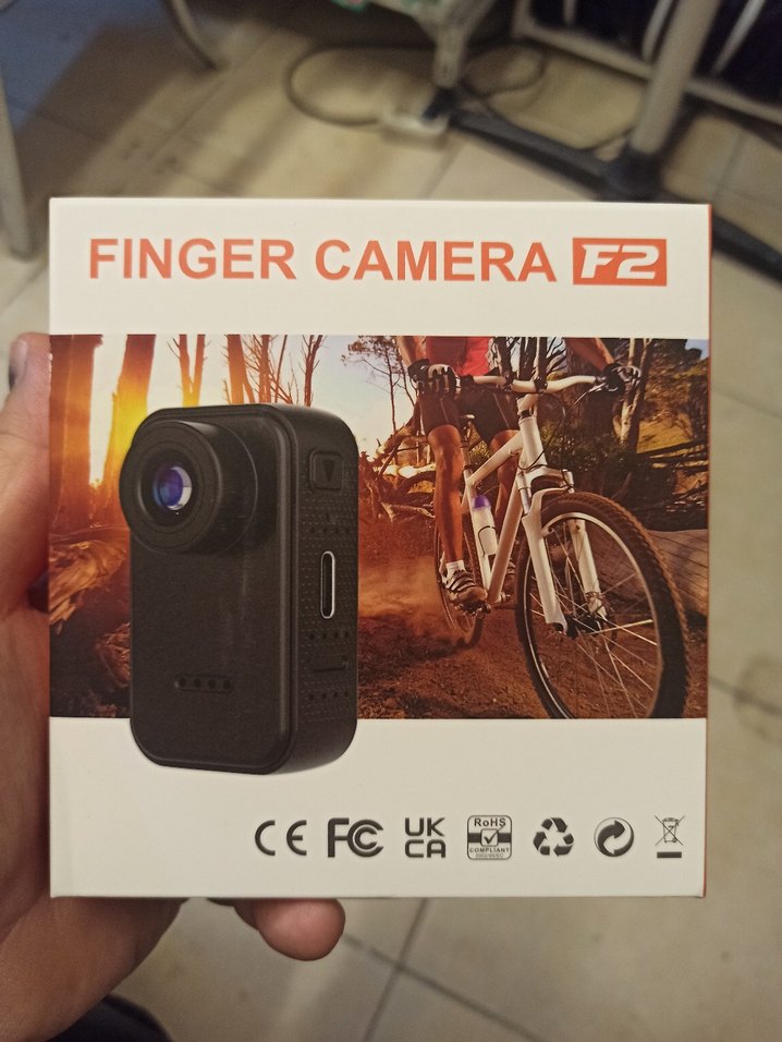 FINGER CAMERA F2, koyu kamel renkli kompakt bir aksiyon kamerasıdır. Dinamik açık hava aktivitelerini yakalamak için uygundur.