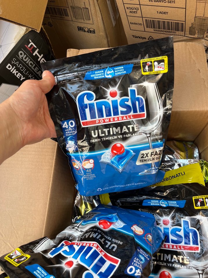 Finish Ultimate Powerball bulaşık tabletleri, derin temizlik ve parlaklık sağlar. Pakette 40 adet tablet bulunur.