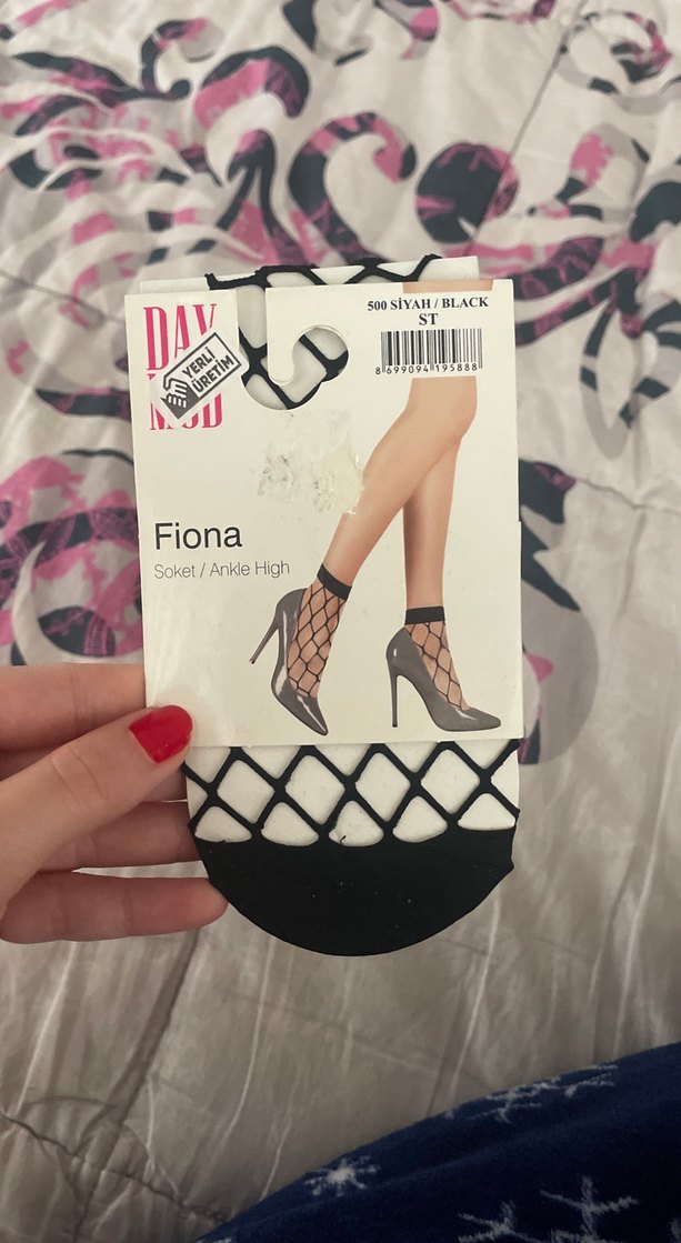Fiona siyah file çorap, dantel detaylı, bilekte ve midi boyda, yumuşak sentetik kumaştan, cesur gotik stil için uygundur.