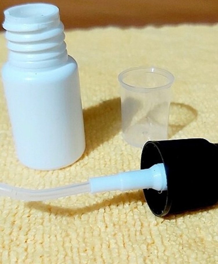 Fırçalı uygulama aparatı olan beyaz oje temizleyici şişe. Küçük şeffaf kapaklı ve kolay kullanım sağlar.