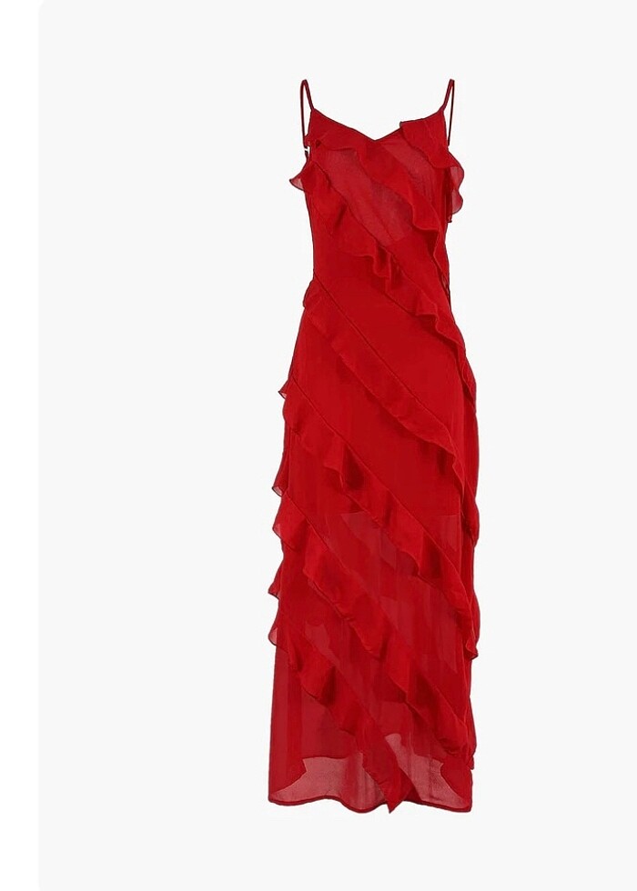 Fırfırlı abiye kırmızı
