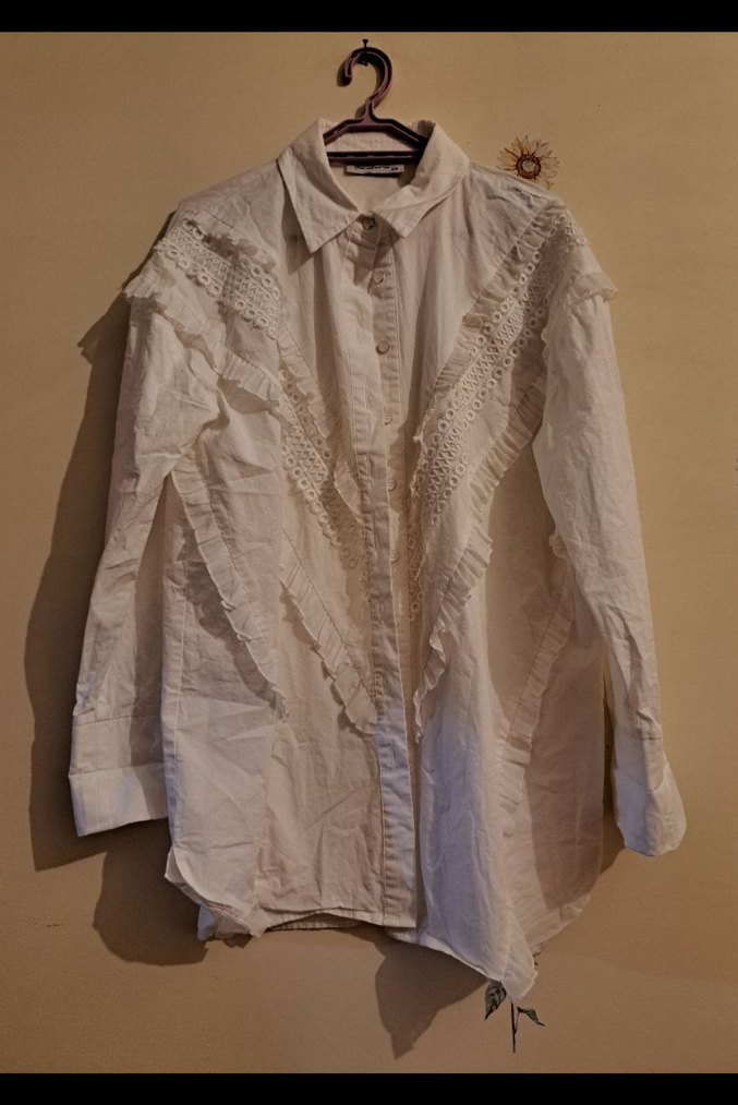 Fırfırlı Beyaz Keten Bohem Gömlek