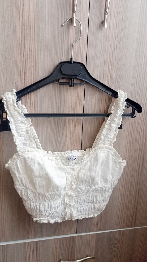 Beyaz keten mini büstiyer. M beden, bir iki kez kullanıldı.