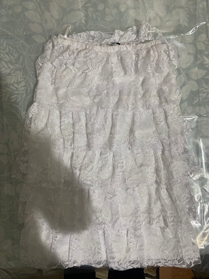 Fırfırlı detaylara sahip, yumuşak sentetik kumaştan yapılmış beyaz, vücuda oturan midi hamile eteği, düğünler için bohem tarzda.