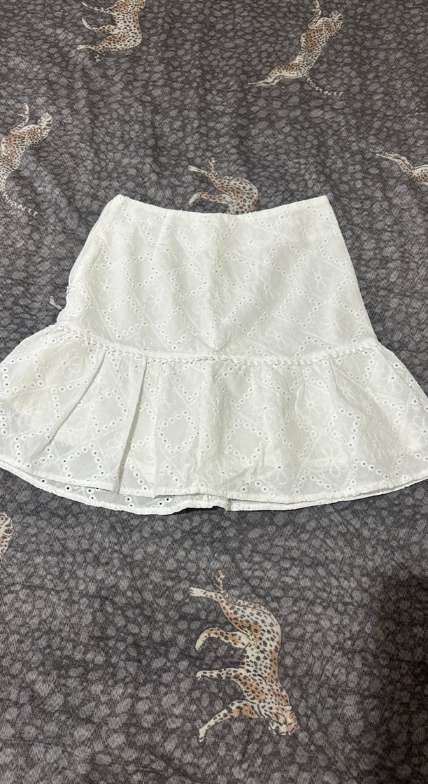 Beyaz mini etek, nakışlı detaylar ve fırfırlı etek ucu ile pamuklu yumuşak kumaştan üretilmiştir. Bol kesim, bohem ve retro tarzlara uygundur, açık hava kullanımı için idealdir.