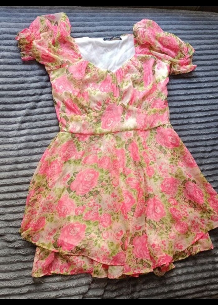 Fırfırlı Çiçekli Elbise