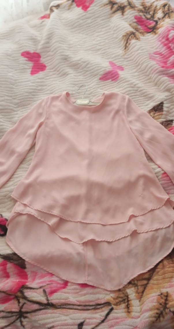 Pudra renkte, uzun kollu, bol kesim ve yuvarlak yakalı bluz Rahat ve şık bir seçim.