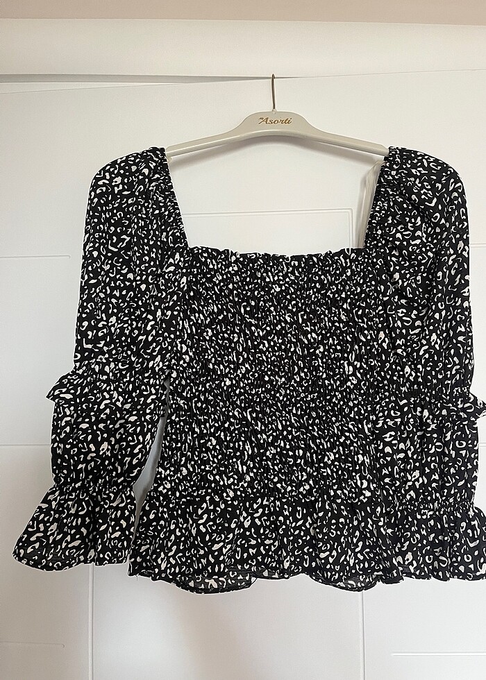 Fırfırlı Kare Yaka Yarım Kol Bluz