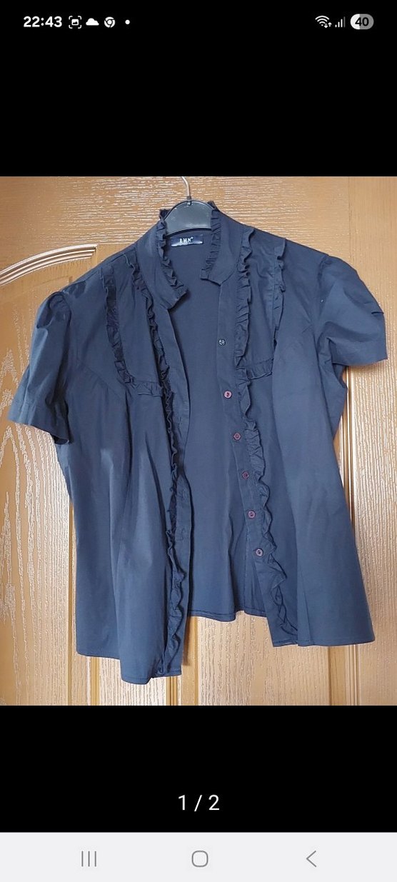 Lacivert renkli, kısa kollu kadın gömlek, fırfır detayları ve kesik yaka ile tasarlanmıştır. Bol kesim ve nefes alan keten kumaştan yapılmış, günlük ve ofis kullanımı için uygundur.