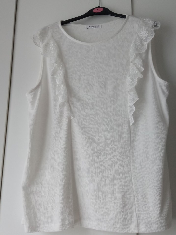 Kırık beyaz renkli, kolsuz, tril tril kumaştan üretilmiş, fırfır detaylı ve yuvarlak yaka bluz. Rahat kesimi ve normal boyu ile günlük kullanım için uygundur. ✨Yepyenidir hiç giyilmedi