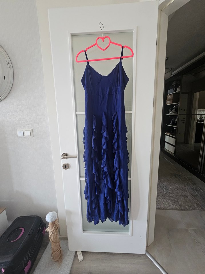 Fırfırlı Lacivert Uzun Kadın Elbise