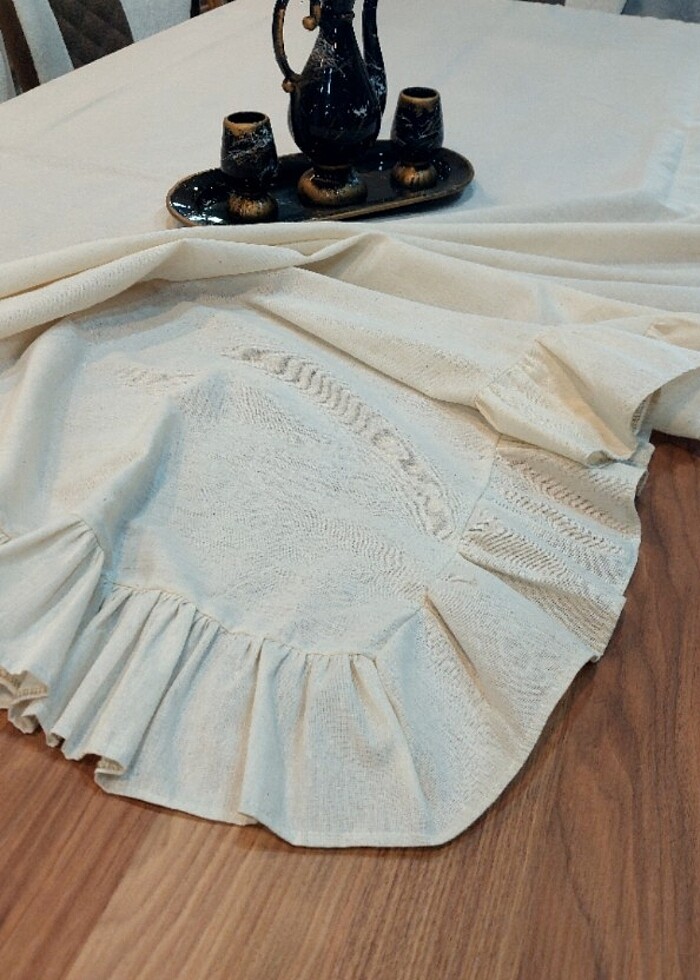 Fırfırlı masa örtüsü 220 X 160 ham keten 4 tarafı fırfırlı özel tasarım ürünüdür
