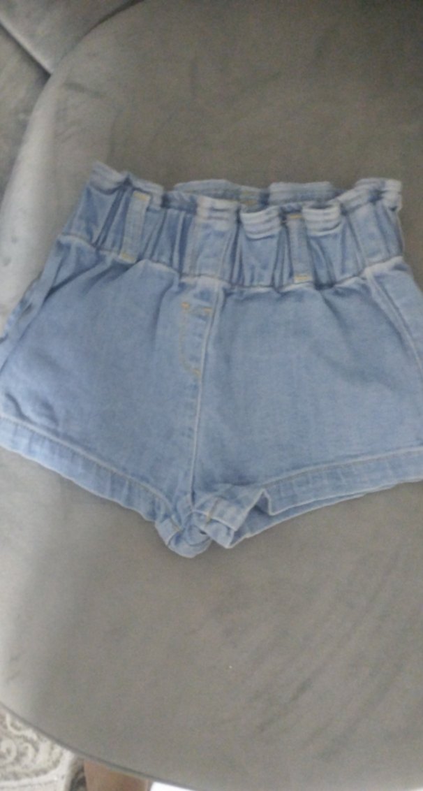 Fırfırlı bel detayı ve bol kesimiyle mavi denim kız şortu, rahat ve şık sokak stili için ideal. Pastel tonlarda, desensiz tasarım.
