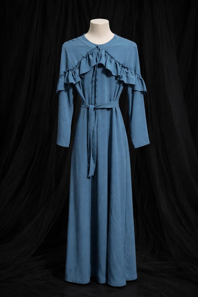 Fırfırlı Mavi Uzun Elbise