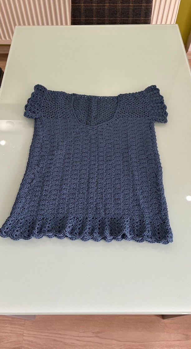 Lacivert renkte, triko kumaştan yapılmış, kayık yaka ve kısa kollu, fırfırlı detaylı mini bluz. Rahat kesimli ve günlük kullanıma uygun, sade ve konforlu tasarım.