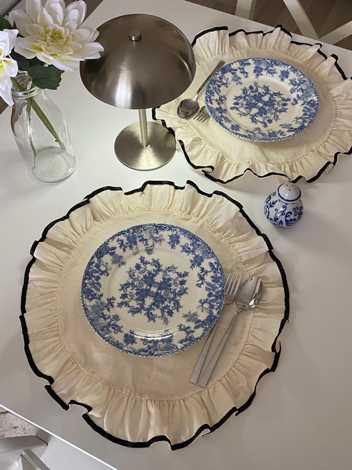 36 cm çapında ham keten kurdele detaylı fırfırlı servis iki adet fiyatıdır kendim dikiyorum sıfır ürün.