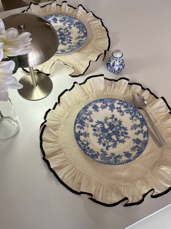 ️ 36 cm çapında ham keten kurdele detaylı fırfırlı servis iki adet fiyatıdır kendim dikiyorum sıfır ürün.