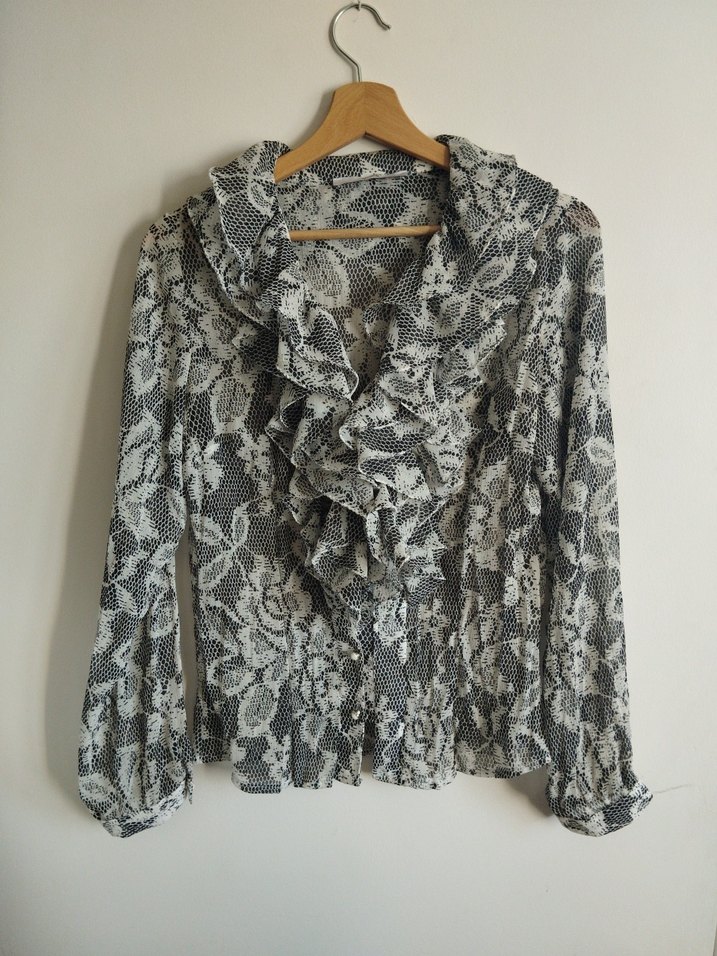 şifon gömlek. Fırfır detayları ve yakası bohem tarzı yansıtır. M beden