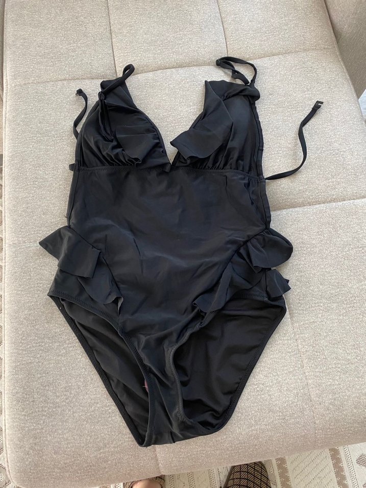 Fırfırlı Siyah Kadın Mayo