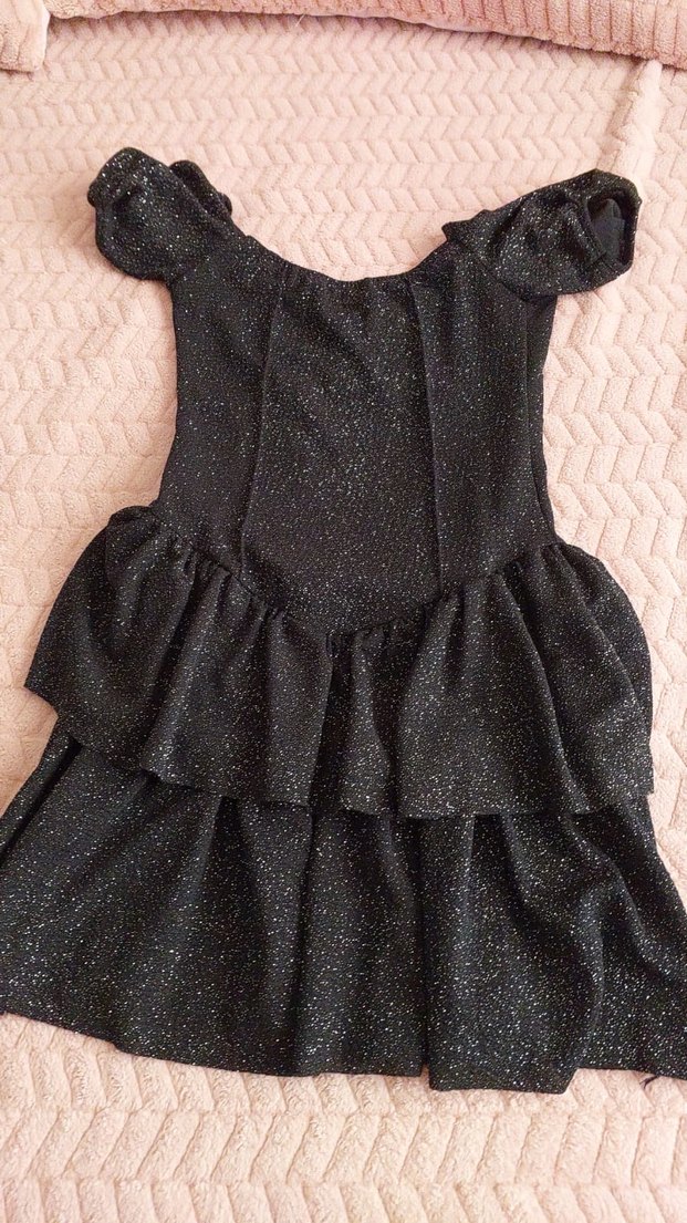 Fırfırlı Siyah kısa Abiye Elbise