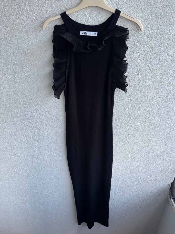 Fırfırlı Siyah Uzun Kolsuz Elbise