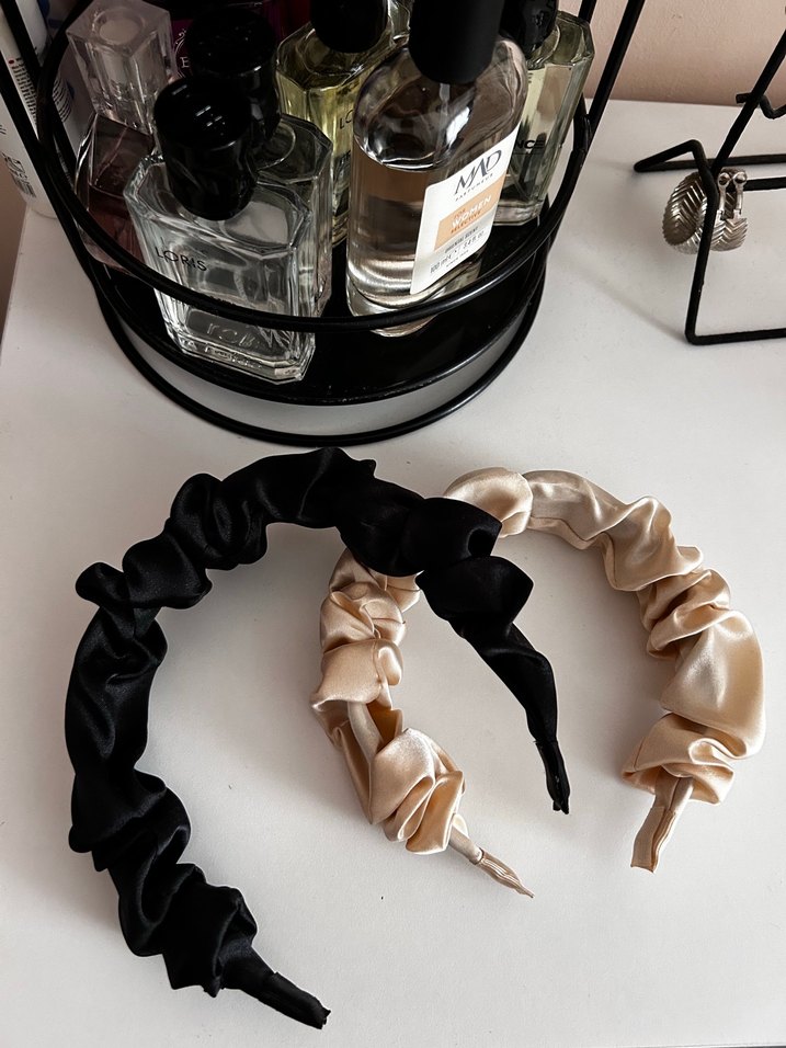 Bej ve siyah saten fırfırlı taçlar, bohem ve modaya uygun görünüm için idealdir. Parisyen avangard tarzınıza şıklık katar. Sorunsuz hiç kullanılmadı