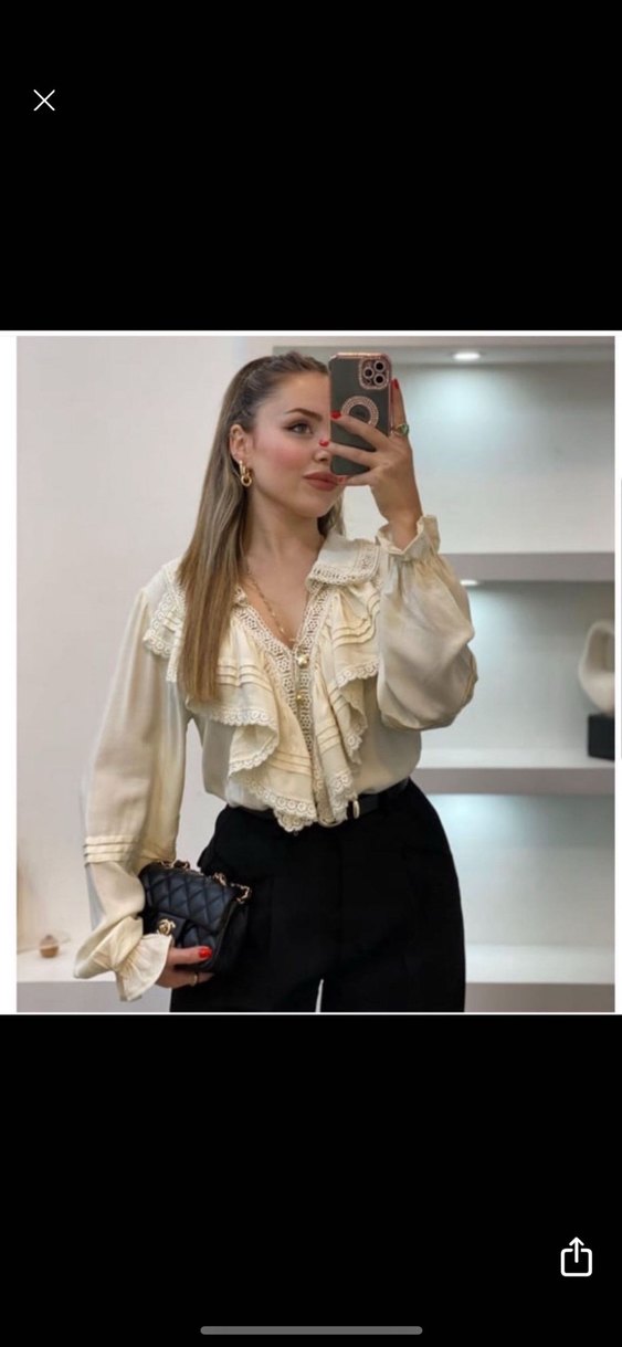 Pamuklu, uzun kollu, V yakalı ve fırfırlı detaylı bej renkli bol kesim gömlek. Hafif renk ve baskılı deseniyle ofis için uygundur. İlk görsel için geçerli fiyat yenidir