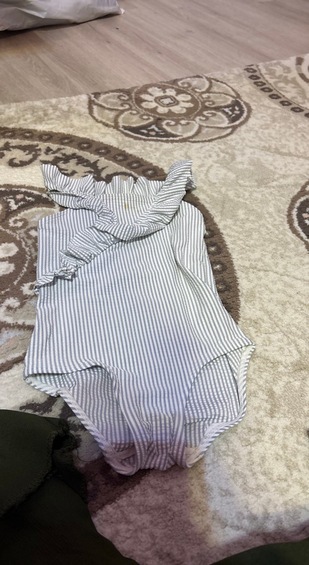 Gri zebra desenli, fırfırlı ve V yakalı kolsuz bebek kız mayo Yumuşak ve rahat kumaştan üretilmiştir.