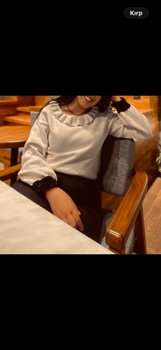 Fırfırlı Yaka ve Manşetli Kadın Triko Kazak
