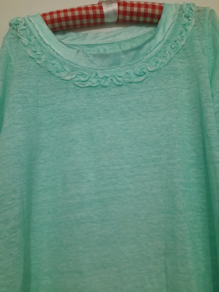 Fırfırlı yuvarlak yaka, uzun kollu hamile bluzu, rahat kesimi ve vintage esintili tasarımıyla günlük kullanıma uygundur. Fıstık yesılı rengınde.kol ucunda baslık desenli .