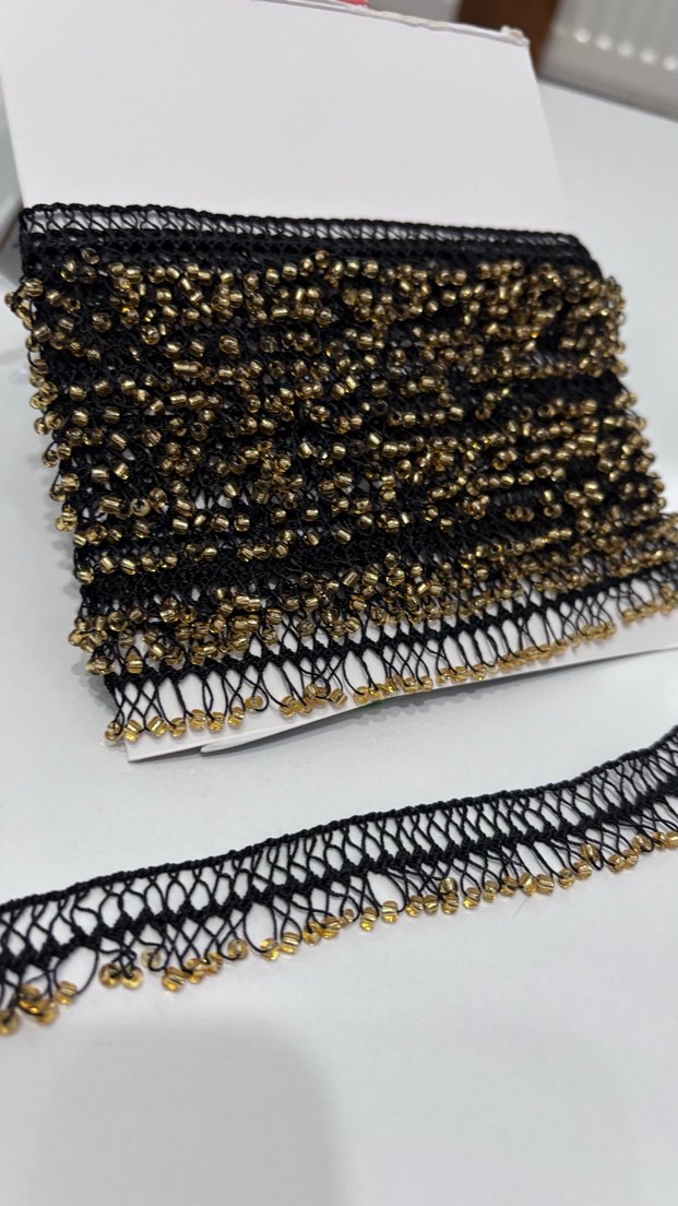 Küçük altın boncuklarla süslenmiş siyah ip 4 metre satış amaçlı yapıldı