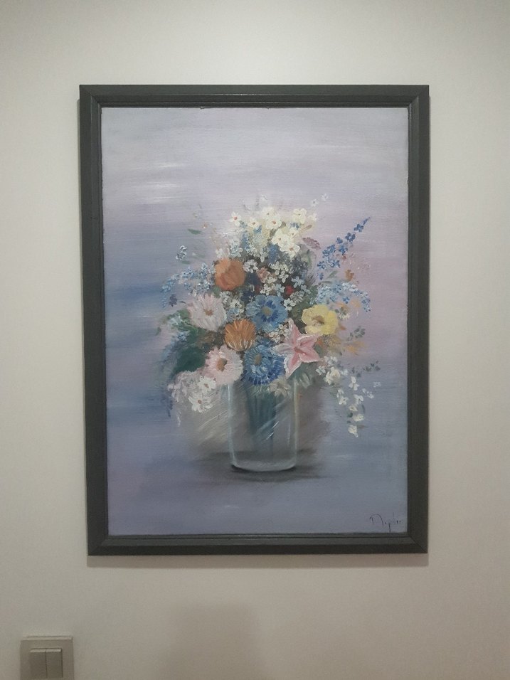 İmzalı Natürmört Yağlıboya Tablodur. Birinci sınıf avrupa ahşap çerçevedir. Ölçüleri 75 × 56 cm dir. Oldukça canlı yumuşak renklere sahiptir. Evinize veyahut ofisinizin havasını değiştirecektir. İhtiyacı olan kaçırmasın boyutları oldukça iyi ve çerçeve fiyatına.