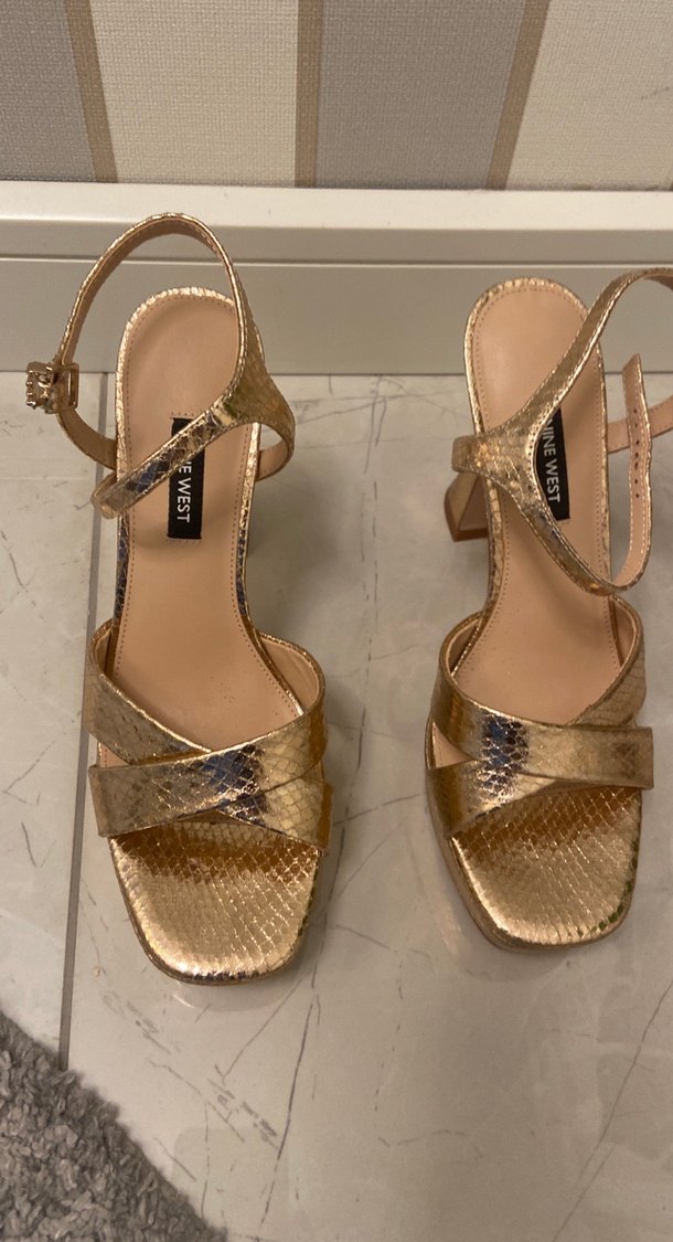 3 saat giyildi, hiçbir sorunu yoktur. İnanılmaz rahat bir ayakkabıdır. Altın renkli , platform topuklu ve tokalı kayışlı, düğün için uygundur. 39/ 40 numara giyenler için uygundur. Mağaza fiyatı 2.750₺ dir İADE ALMIYORUM****