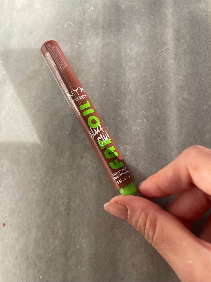 NYX lip gloss, parlak haki renkte, dudaklara pürüzsüz ve parlak bir görünüm sağlar. İnce tüp tasarımı kolay uygulama sunar.